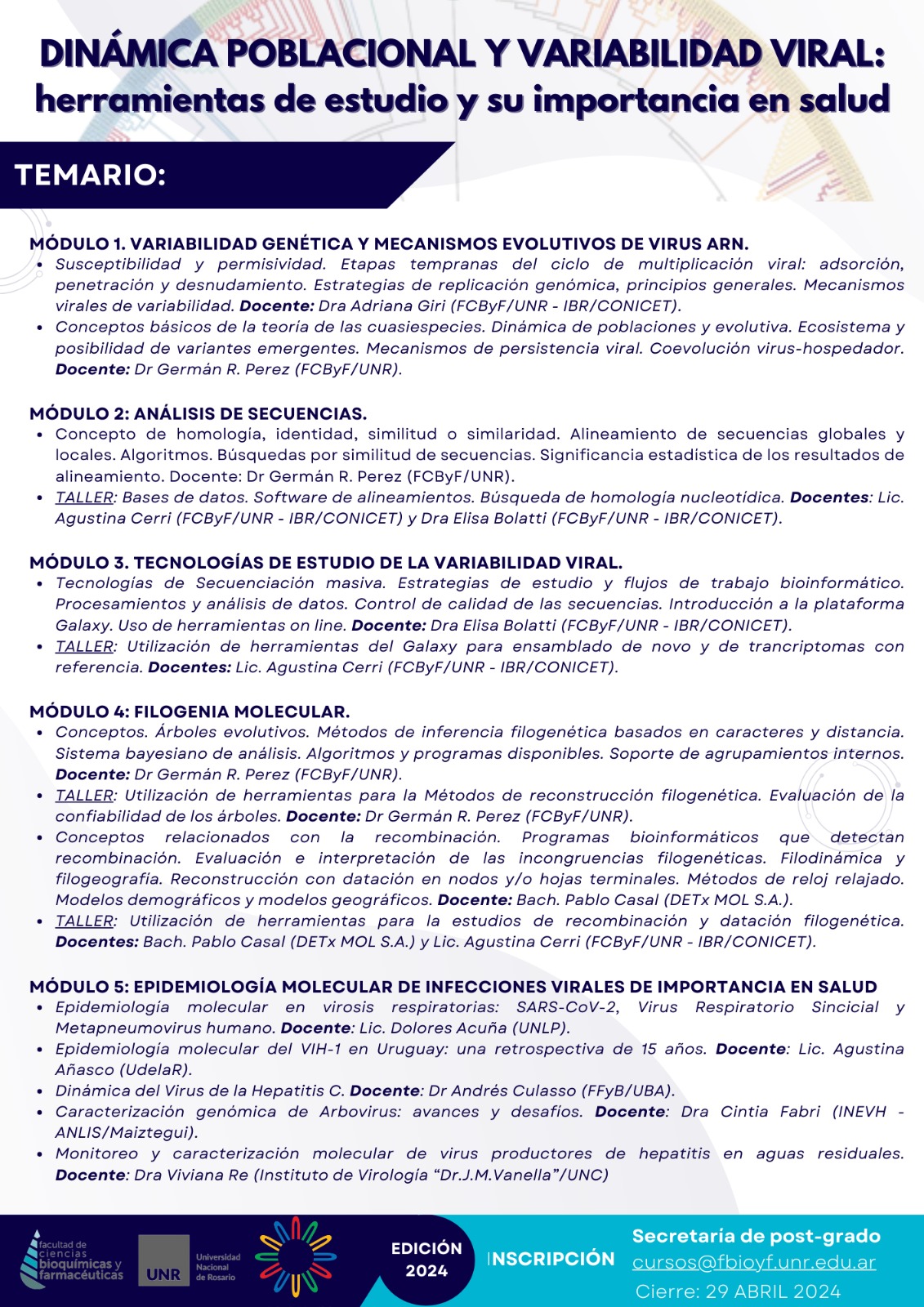 Organiza la Universidad Nacional de Rosario mentre junio y agosto del 2024.