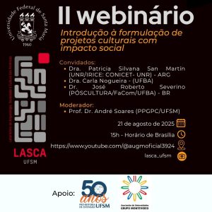 El Observatorio de Patrimonio, lugares, humanidades y artes (OPLHAr) de la Asociación de Universidades del Grupo Montevideo (AUGM) invita a la comunidad universitaria de la región a participar de su segundo webinario que tendrá como temática la Introducción a la formulación de proyectos culturales con impacto social el jueves 21 de agosto a las 15 hs (Argentina, Uruguay, Brasilia).